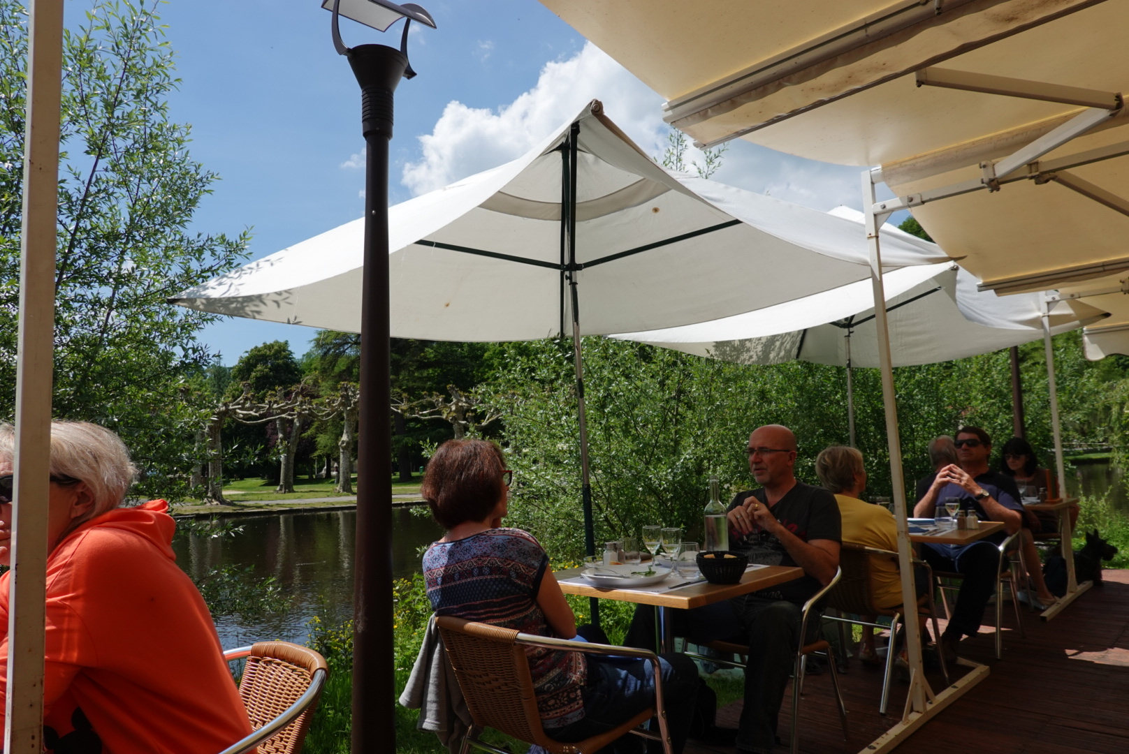 Belle terrasse fraîche au bord de l'eau, bonne cuisine et service impeccable