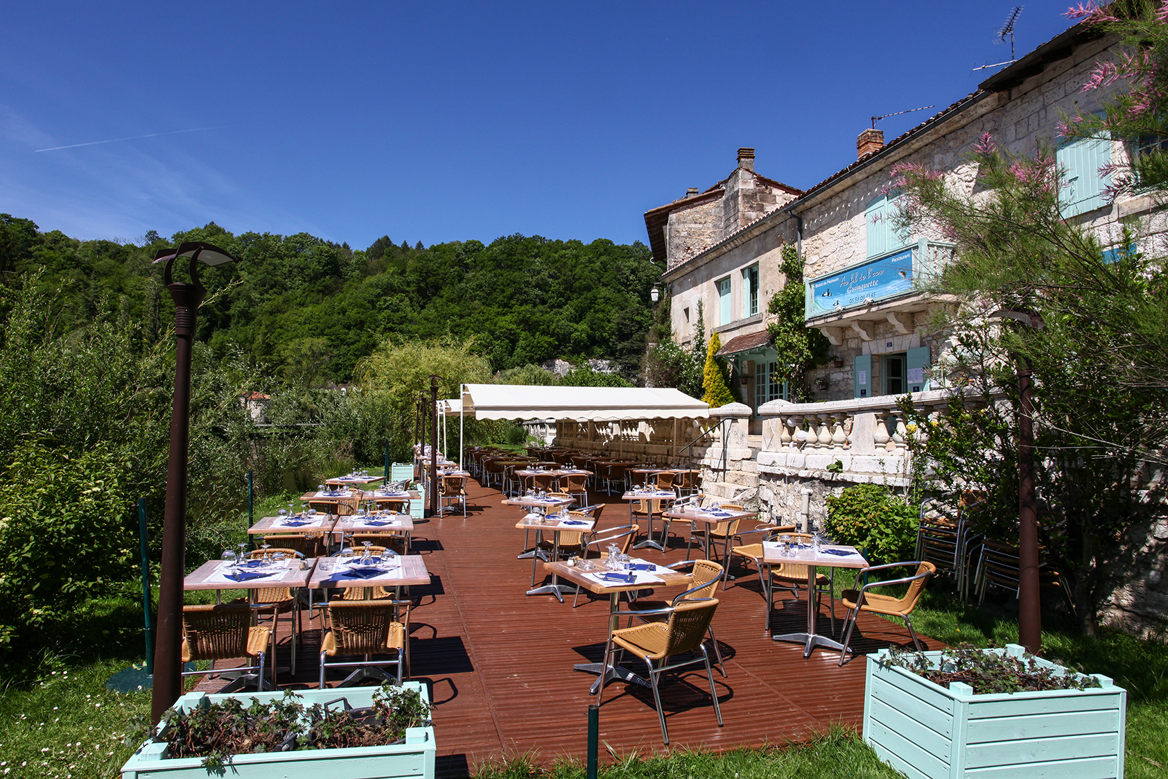 On ne peut pas rater la terrasse de ce restaurant au cœur de Brantôme. Si vous réservez assez tôt vous pourrez déjeuner ou dîner au bord de l'eau, avec possibilité de donner à manger aux canards ;) Le décors est romantique et le service très amical. La cuisine servie est délicieuse, bien au dessus des restaurants touristiques, la présentation soignée et les prix, bien qu'un peu au dessus des autres établissements, justifiés et raisonnables. Un excellent souvenir.