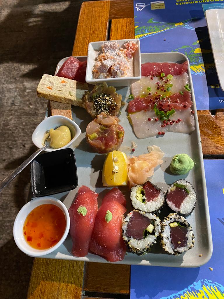 Un pur concept très réussi, nous nous sommes régalés avec un filet de thon mi-cuit et une Tahitienne (ce jour ci, dés de Marlin marinés lait de coco citron). Il faut aussi garder de la place pour un dessert !