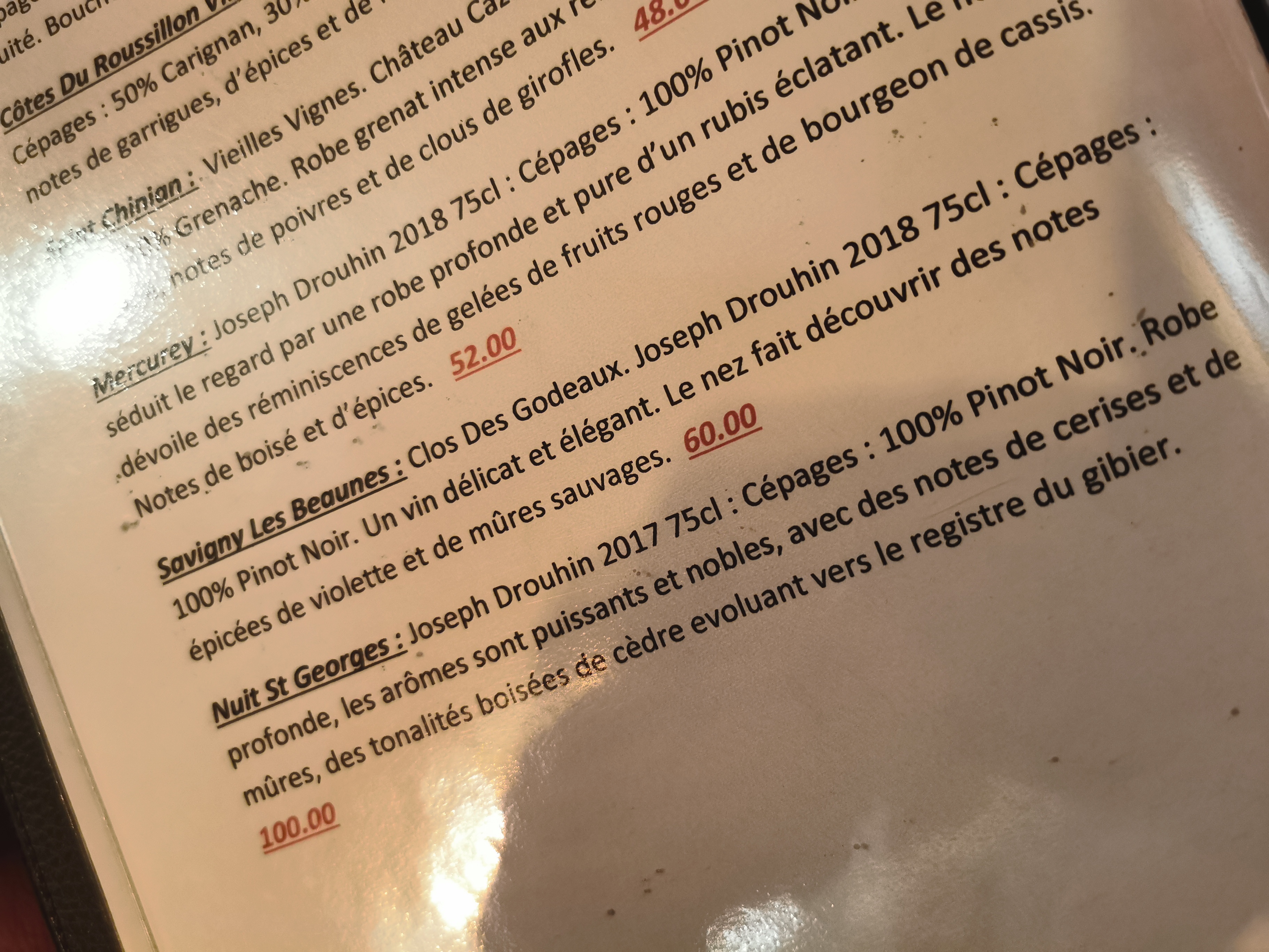 Tout est indiqué à l'extérieur , les prix et le fait qu'il n'y aie pas de menu.Si les prix ne viys convienne pas , rien ne vous oblige à rentrer .Quant aux prix de restaurant gastronomique , vous ne devez pas en fréquenter souvent car vous sauriez que l'on est l'on du compte. Maître Restaurateur signifie tout fait maison avec des produits frais le plus possible locaux.