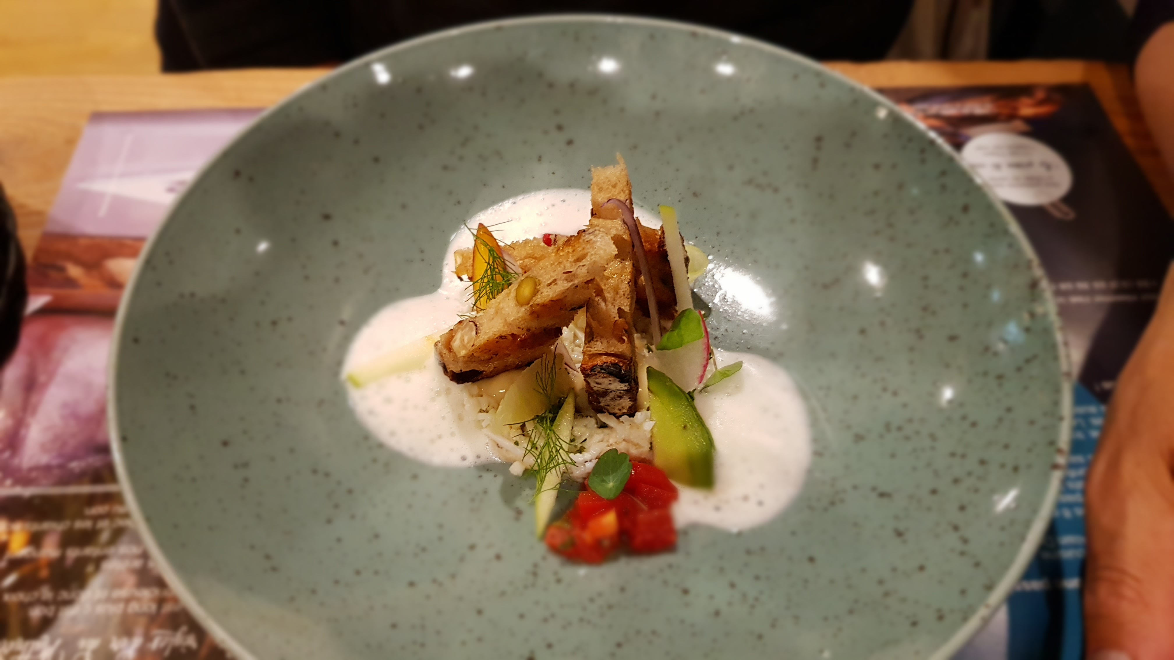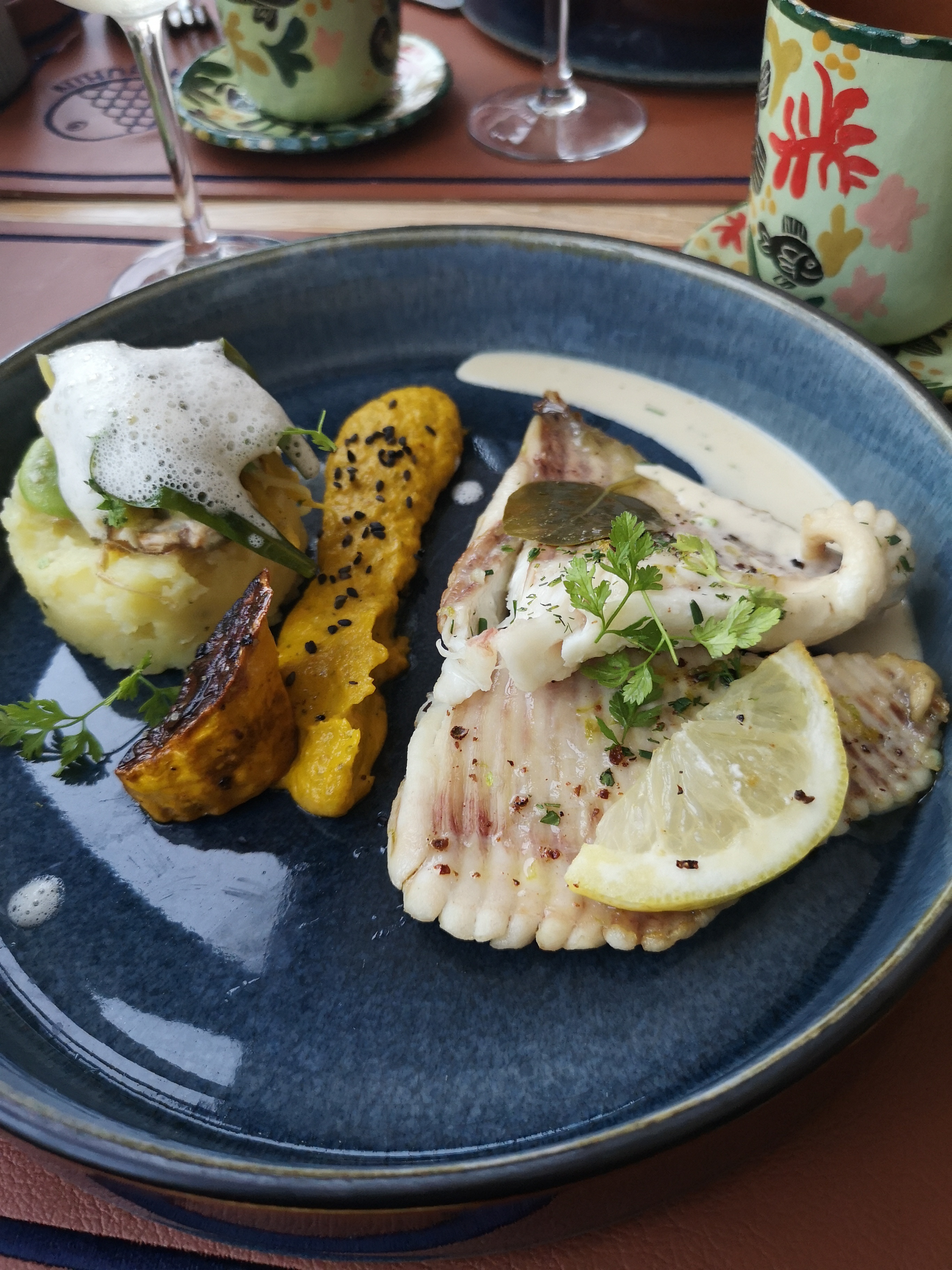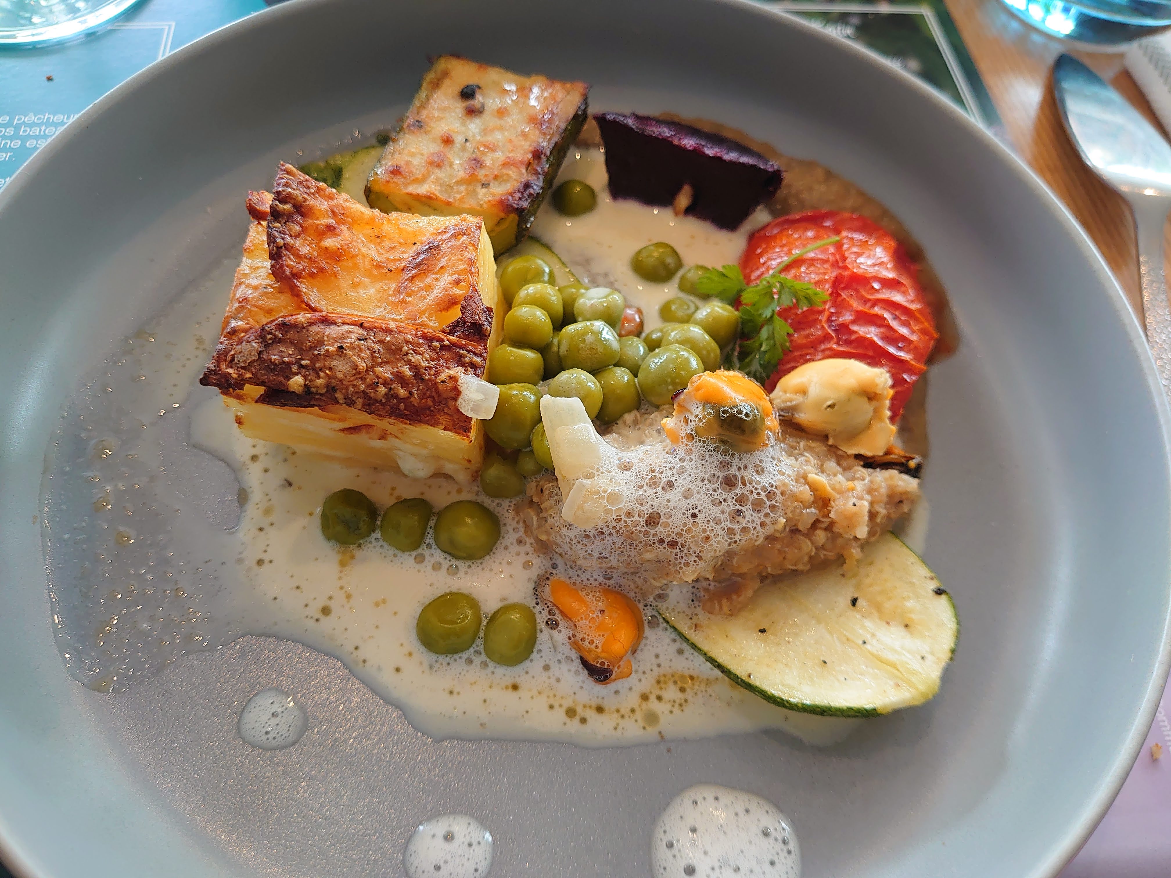 Délicieux, digne d'un restaurant étoilé au niveau de la nourriture, par contre sur 3 assiettes, 2 étaient ébréchées... dommage qu'un plat aussi beau et bon soit gâché par une assiette pas top