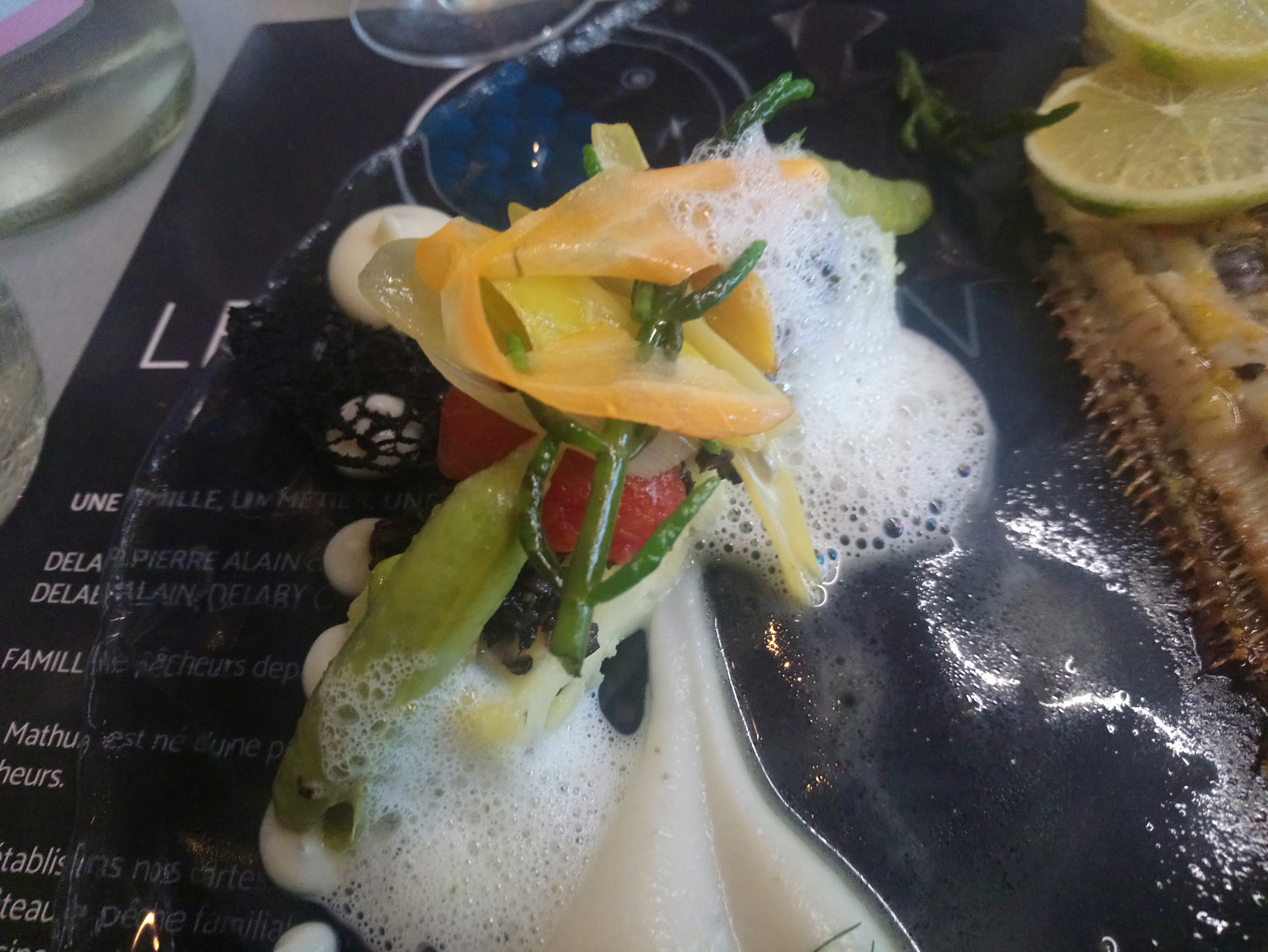 Des plats osés et savoureux qui mettent le poisson à l'honneur , une carte qui flirte avec les retours de pêche et l'imagination du chef en cuisine, des desserts éclatants de couleurs , transportant nos papilles ,un service à la hauteur connaissant la carte parfaitement.. ne pas hésiter.
